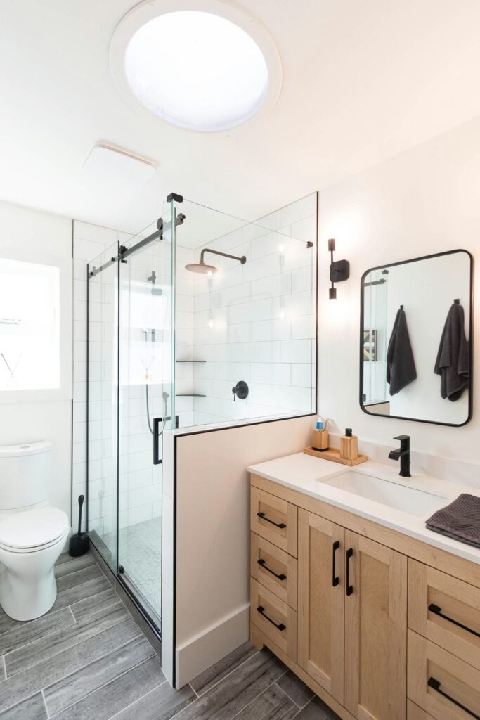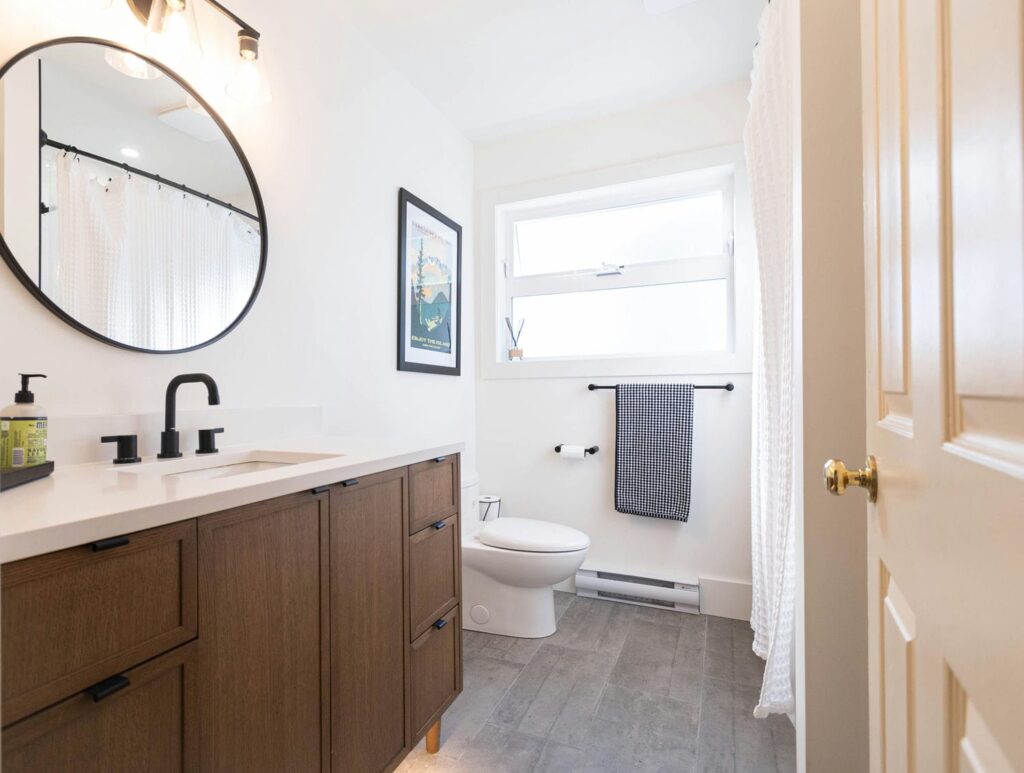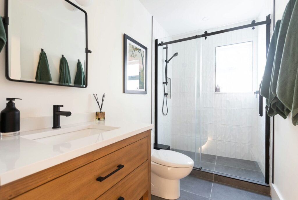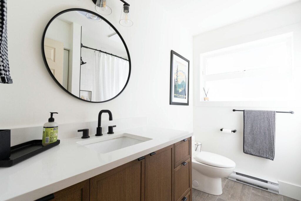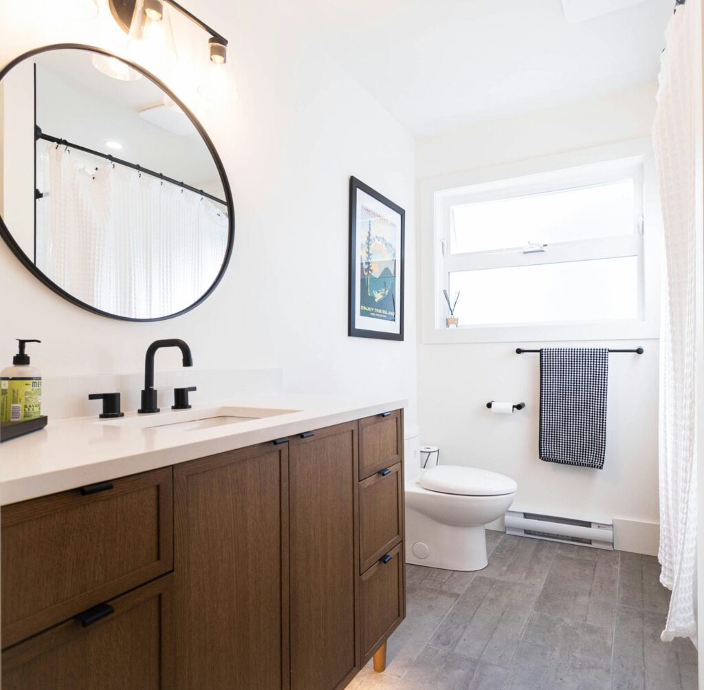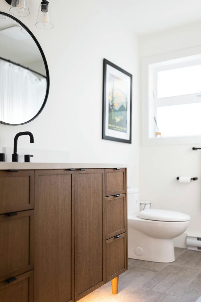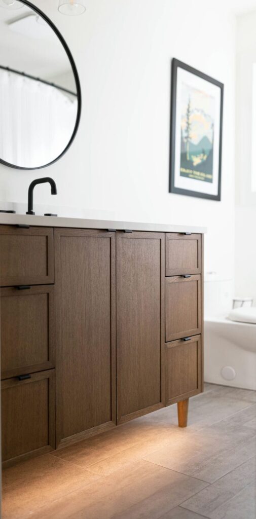 Each room was carefully planned to balance durability with design, from the selection of tile and fixtures to the custom-built vanities and thoughtful lighting. The result is a seamless blend of modern simplicity and warm character, tailored perfectly for a family that values both style and functionality.