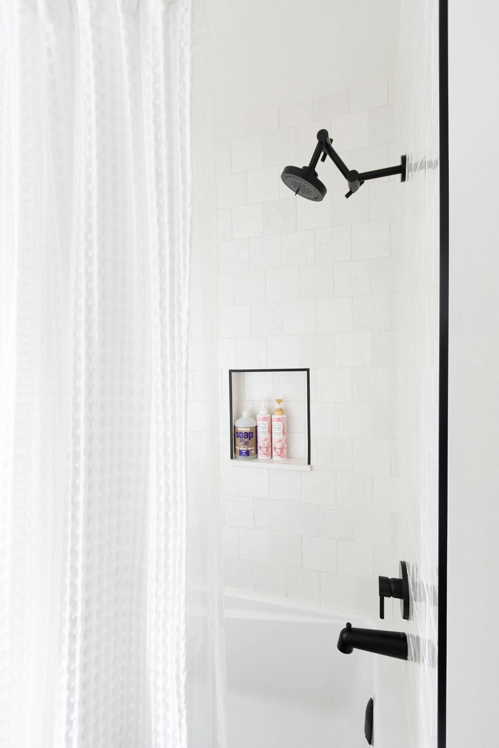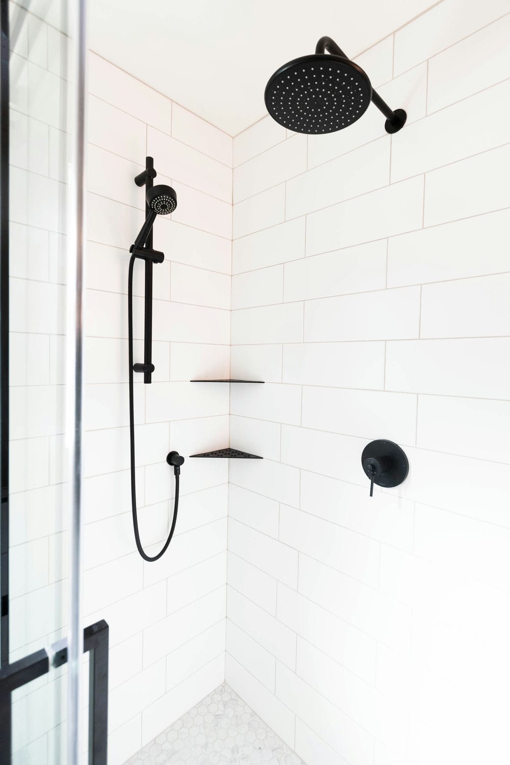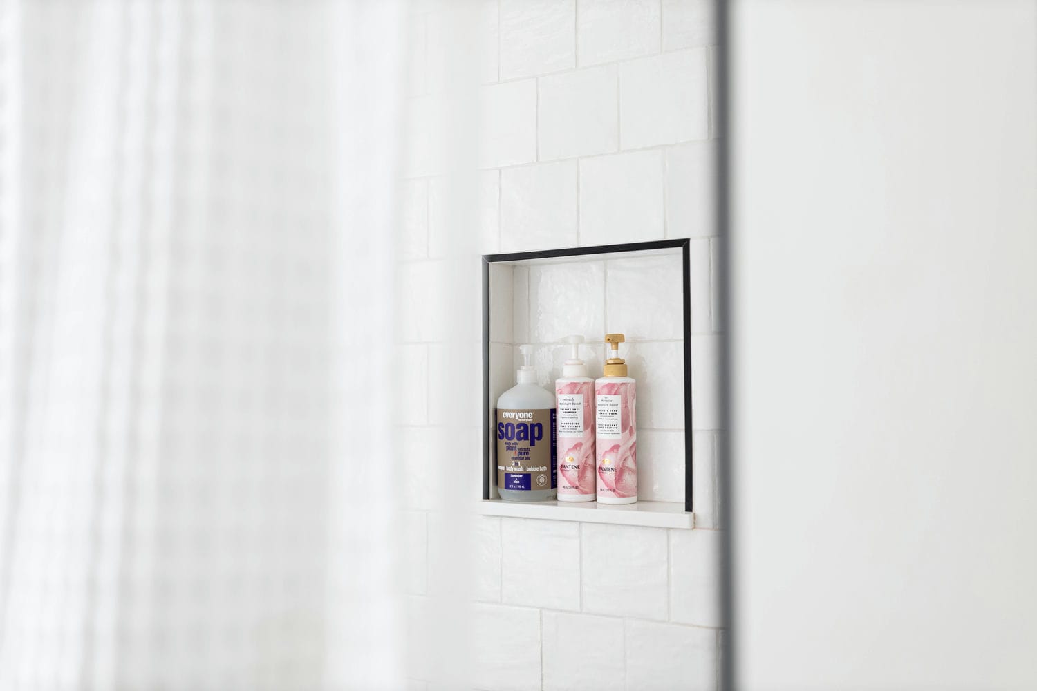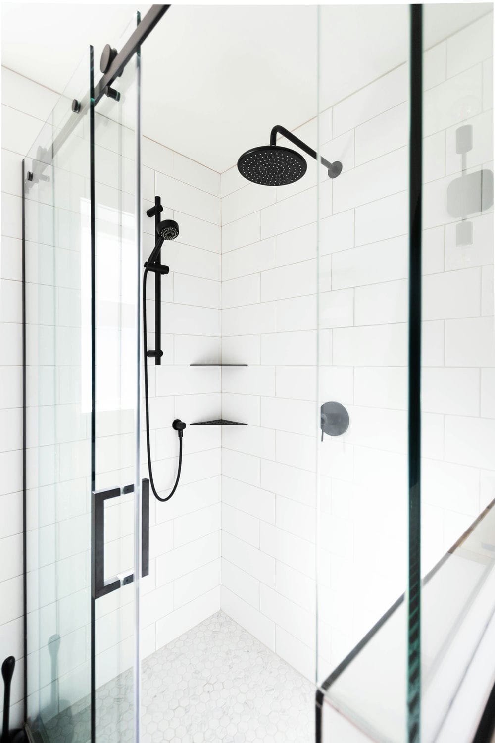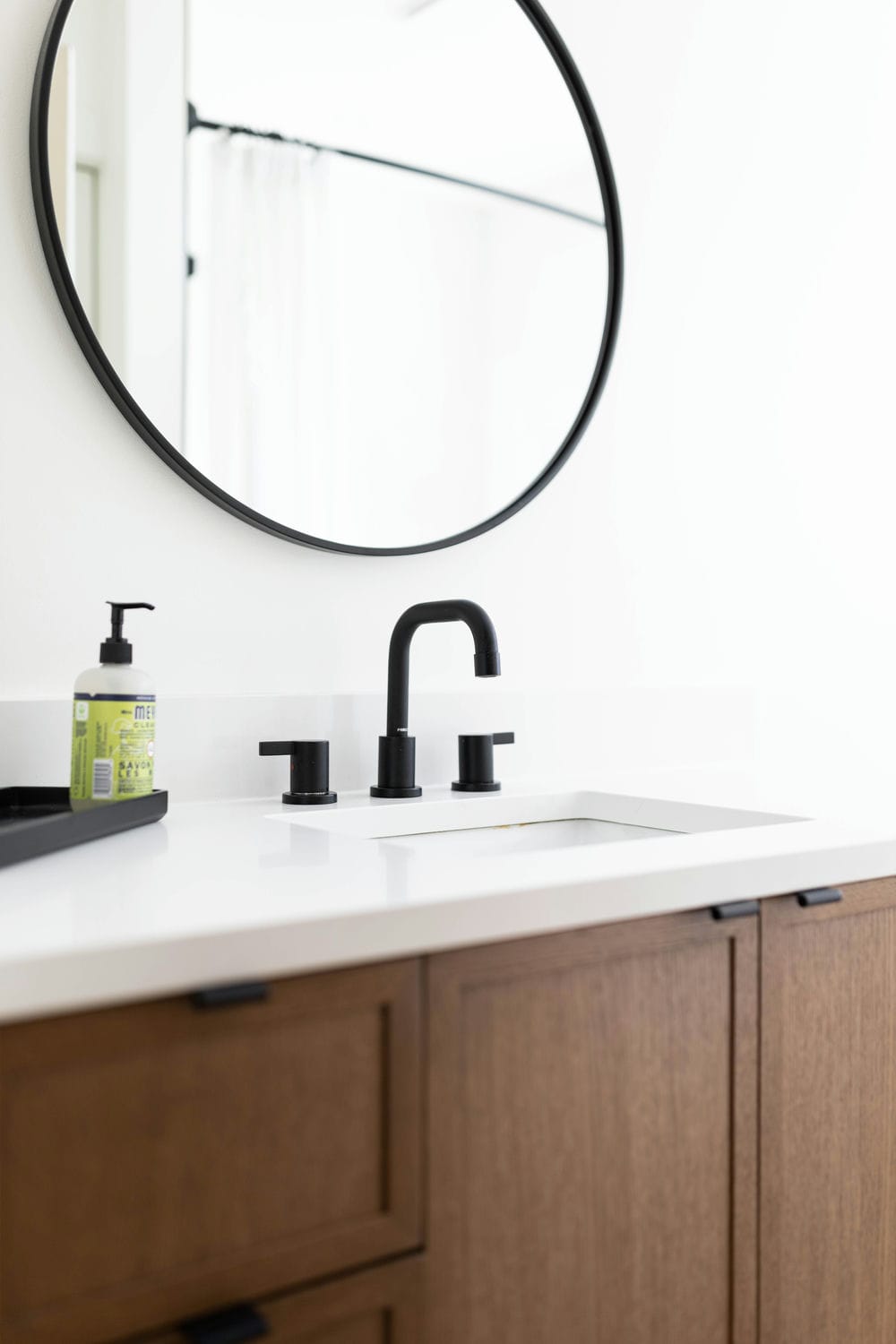 This renovation brought new life to a busy family home, transforming three bathrooms into bright, functional retreats designed for everyday comfort. Our focus was on creating a cohesive sense of calm throughout the spaces — blending natural wood tones, crisp whites, and matte black finishes for a timeless, airy feel.